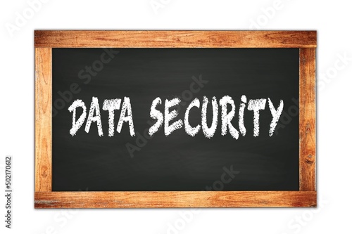 Fototapeta premium DATA SECURITY text written on wooden frame school blackboard.