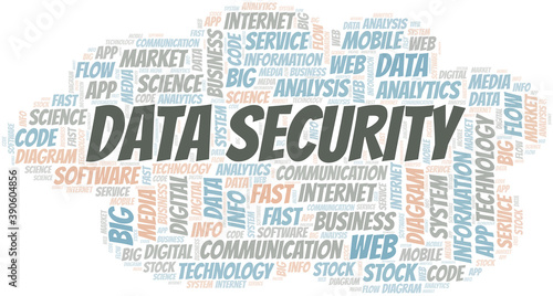 © sharafmaksumov, Obraz premium Data Security vector word cloud, made with text only.