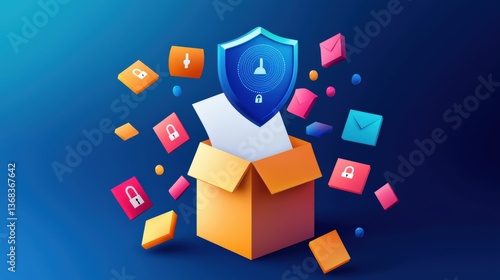© Petchladda, Obraz premium Data shield hovering over a ballot paper with biometric lock patterns