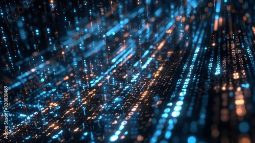 Obraz premium Data Stream Binary Code Cascades in a Hypnotic Luminous Flow