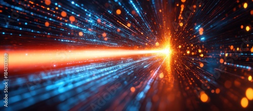 Obraz premium Data stream tunnel, glowing particles, digital flow, abstract background,...