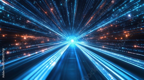 Obraz premium Data streams converge in a futuristic tunnel of light.