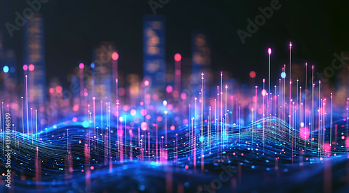 Obraz premium Data streams over undulating networks digital cityscape with light trails and...