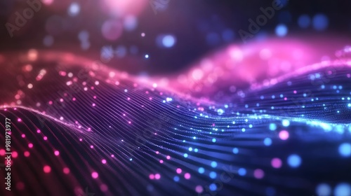 © Jane, Obraz premium Data Tech Concept: Wavy Pattern of Digital Dots
