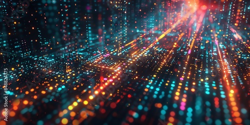 © rajagambar99, Obraz premium Data technology background. Big data visualization. Flow of data. Information code. Background in a matrix style. 4k rendering, Bright color, realistic