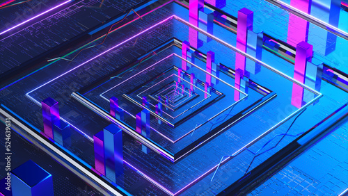 Obraz premium Data transfer concept. Neon blue smooth square panels. Pink blue rectangular...