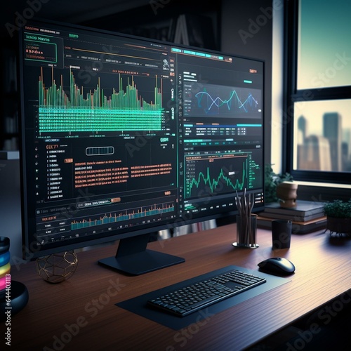 Fototapeta premium data visualization touch screen workspace forex stats stcks information