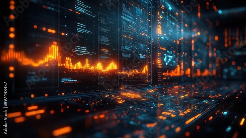 © julija, Obraz premium data visualizations depicting analytics power in business with bright colors and intricate graphs displayed on futuristic screens in a hightech office environment
