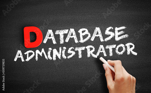 © dizain, Fototapeta premium Database Administrator text on blackboard, technology concept background