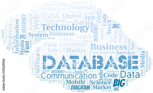 © sharafmaksumov, Obraz premium Database vector word cloud, made with text only.