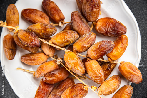 Obraz premium date branch dried fruit fresh appetizer food snack on the table copy space...