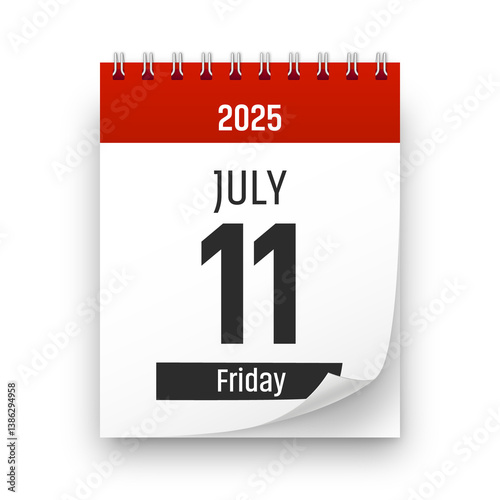 Fototapeta premium Date 11 July 2025 year realistic calendar day page design. July 11...