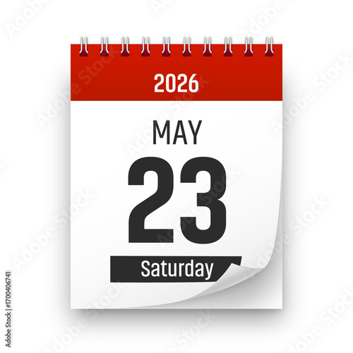 © lemugraphics, Fototapeta premium Date 23 May 2026 year realistic calendar day page design. May 23 transparent png