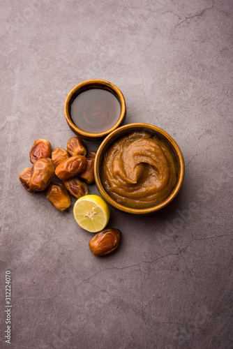© Arundhati, Fototapeta premium Dates Face mask for supple, smooth and clear skin with ingradients like fresh raw khajoor, lemon and honey. selective focus