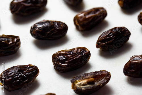 © strigana, Obraz premium Dates fruit pattern on white background. Dried organic Superfood.