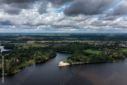 © Janis Smits, Obraz premium Daugava river next to Koknese city, Latvia.