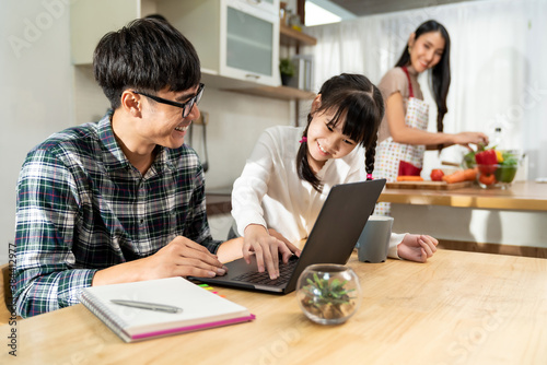 © vichie81, Obraz premium Daughter help dad work from home