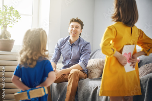© Konstantin Yuganov, Obraz premium daughters congratulating dad