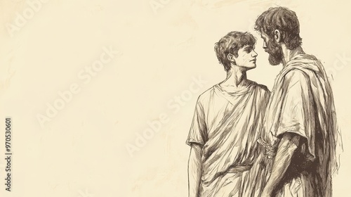 © T Studio, Fototapeta premium David Anointed King in 1 Samuel: David with Samuel, Feeling Lord’s Spirit and Destiny, Biblical Illustration