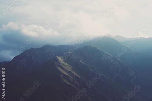 © Qzian, Fototapeta premium Dawn and mountains in the clouds