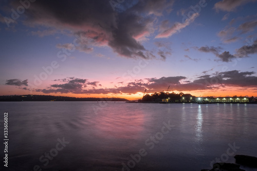 © Tim, Naklejka premium dawn clouds and harbour workshop lights