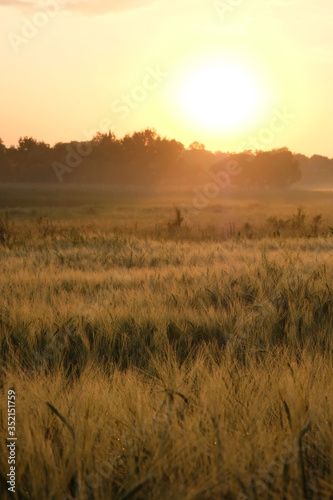 Obraz premium Dawn in a wheat field. Beautiful landscape on sunrise