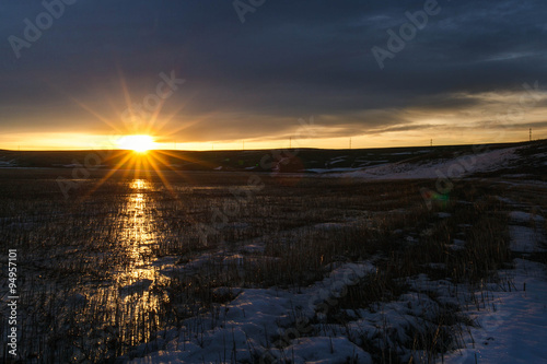 Fototapeta premium dawn in the spring field