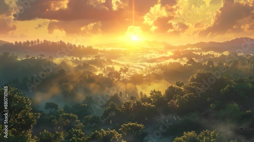 © asura, Fototapeta premium Dawn of a New Day, Sun, Sunrise, Mist, Valley
