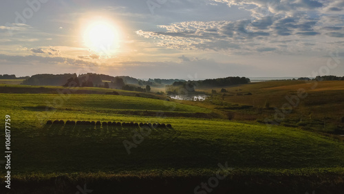 © Павел Чигирь, Obraz premium dawn over a green hilly meadow