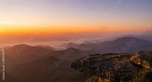 © garpinina, Fototapeta premium dawn over layered mountain ranges
