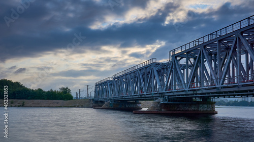 Fototapeta premium Dawn over the railway bridge in Voronezh