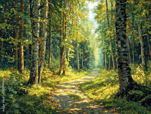 © diowcnx, Fototapeta premium Dawn's Awakening: Forest Landscape Bathed in Morning Sunlight