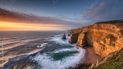 Obraz premium Dawn's Light on Rugged Coastal Cliffs