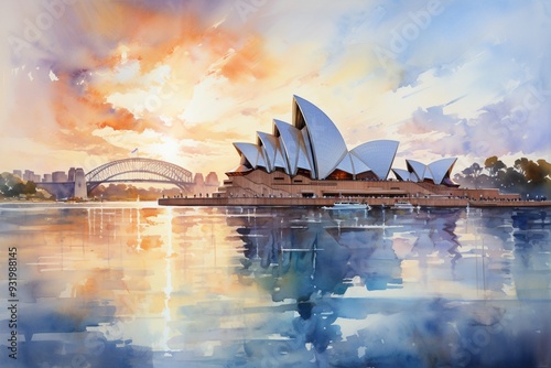 © Bijali, Fototapeta premium Dawn sydney opera house created water photos