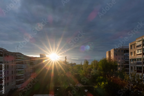 Fototapeta premium Dawn View over housing in Madrid with Dramatic Sky