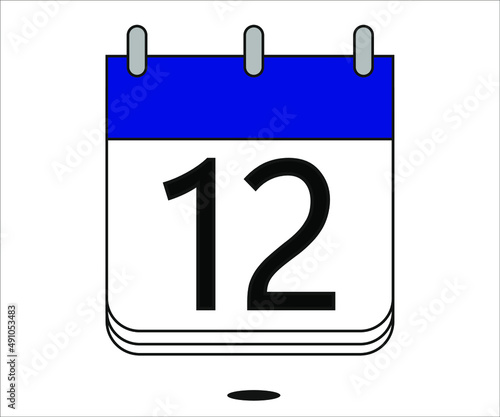 © BOROFOTOS, Fototapeta premium day 12 blue calendar icon with white background