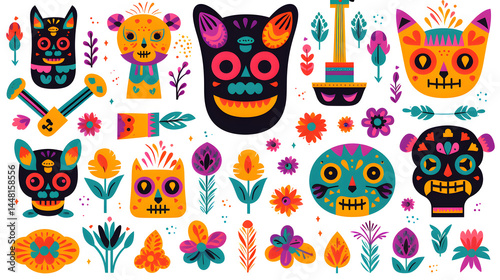 © Ava, Fototapeta premium Day of Dead Dia de los muertos Flat Vector Illustration for Festive Celebrations