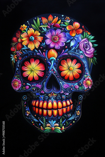 © shintartanya, Fototapeta premium Day of the Dead, greeting banner, Mexican colorful skulls. Mexican, hispanic ceramic pottery Day of the Dead ,Dia de los Muertos, skulls