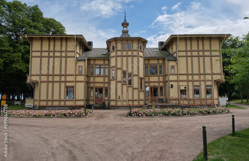 Fototapeta premium Day trip on a cloudy summer day to the town of Hjo on Lake Vaettern, Sweden's...