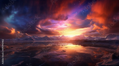 © MainkreArt, Naklejka premium day turning to night sunset over the mountains
