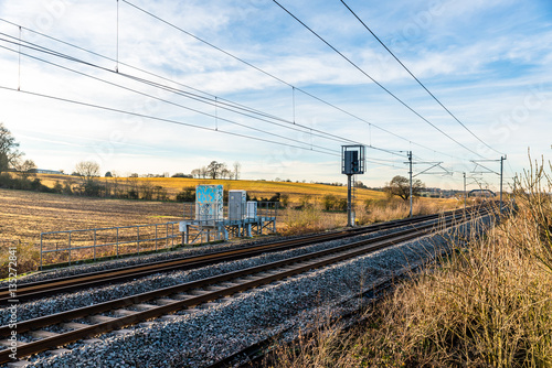 © Jevanto Protography, Fototapeta premium Day view of UK Railroad in England. Railway landscape