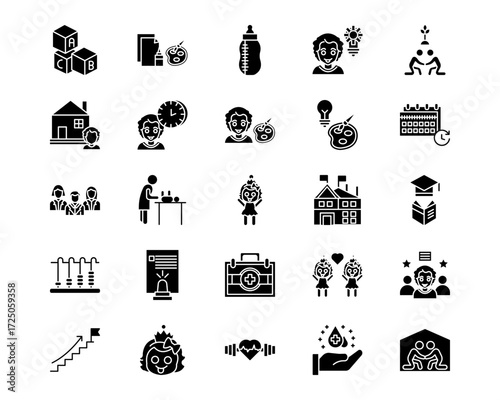 © Icons Studio, Naklejka premium Daycare Line Vector Icons