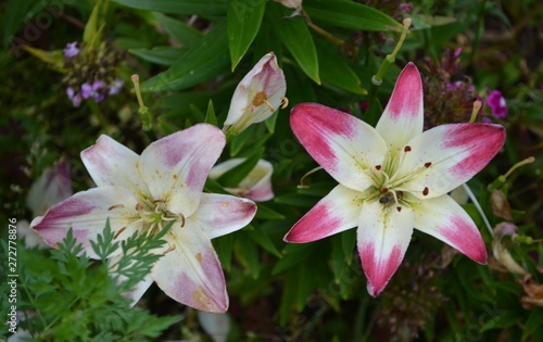 © Елена Тарасова, Fototapeta premium Daylily on a green background in the garden.