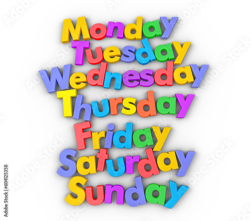 © FrankBoston, Fototapeta premium days of the week in colorful letter magnets isolated