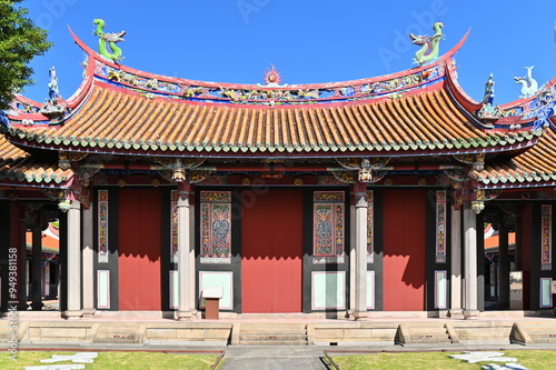 © Moment Capsule, Fototapeta premium Daytime view of the Yi Gate (Da Cheng Gate), located in front of the Dacheng Hall at Taipei Confucius Temple. Closed except during ceremonial events.