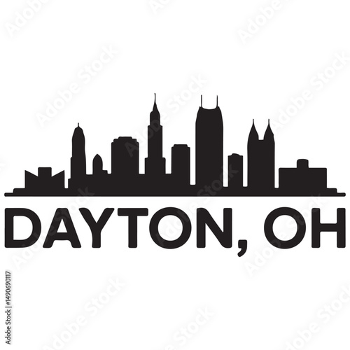 Naklejka premium Dayton, OH skyline, monochrome Vector black silhouette. with white background