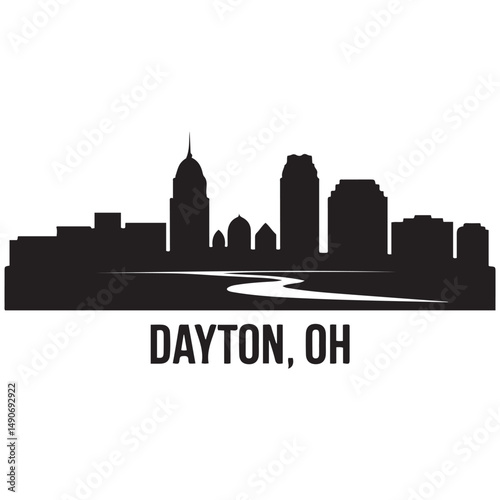 Naklejka premium Dayton, OH skyline, monochrome Vector black silhouette. with white background