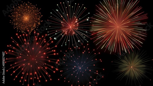 Fototapeta premium Dazzling fireworks display lighting up the night sky with vibrant reds,...