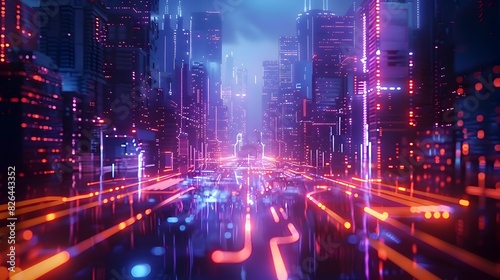 Fototapeta premium Dazzling Futuristic Neon Cityscape for Digital Advertising and Product...