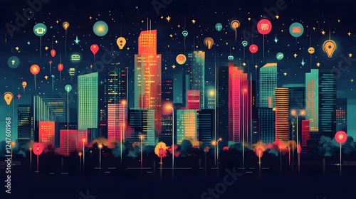 © Chumporn, Fototapeta premium Dazzling Neon Lit Cityscape with Soaring Skyscrapers at Night